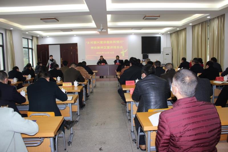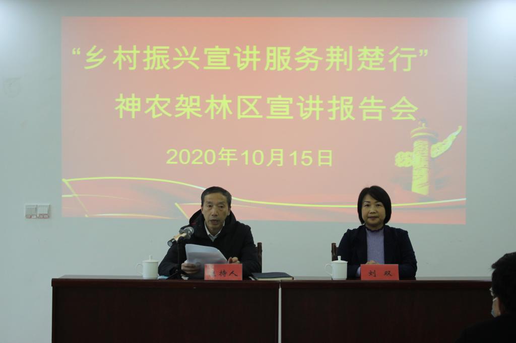 10月15日,“乡村振兴宣讲服务荆楚行”宣讲报告会在神农架举行。best365官网登录入口形势与政策教研中心主任刘双作习近平生态文明思想主题报告。神农架林区党委常委、林业管理局局长王兴林主持。神农架林区、国家公园管理局、林业管理局各部门、各单位相关负责人听取报告会。