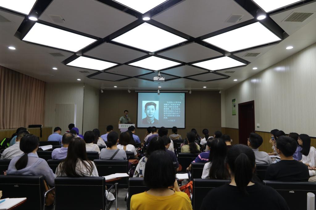 随后,学院全体师生参加了新思想“精读精讲”活动第一次专题报告会。但昭明老师以《习近平新时代中国特色社会主义思想学习纲要》中“掌握马克思主义思想方法和工作方法”为主要内容,做了“把握学习方法,助推能力建设”学习辅导报告。他从对习近平总书记对马克思主义哲学的高度评价和世界读书日中总书记的劝学篇入手,引申出掌握马克思主义思想方法和工作方法,要把马克思主义哲学作为看家本领,坚持实事求是的原则,提高科学思维能力,保持战略定力,坚持问题导向,重视调查研究,发扬钉钉子精神,依靠学习走向未来,并结合时政热点问题具体阐释了其中的深刻内涵。此外,他还介绍了马克思主义的方法论革命,通过大量实例解释了实践思维、“总体性”思维,从形式逻辑到辨证逻辑三方面的内容。