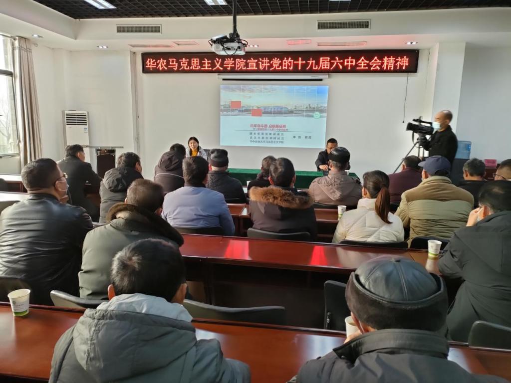 在襄阳市襄州区何岗乡村建设研究院,湖北省委讲师团成员、湖北省理论热点面对面示范点专家、best365官网登录入口大学best365官网登录入口教授李恺,为襄州区党委理论学习中心组成员、乡镇干部、党员和群众代表50余人作党的十九届六中全会精神宣讲。