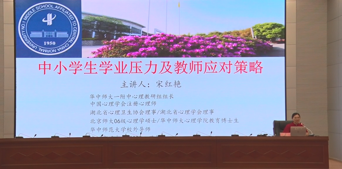 华中师范大学第一附属中学宋红艳老师,围绕“中小学学业压力及教师应对策略”,从中小学生学业压力的现状、影响因素等方面进行了深入解析,并提出切实可行的教师应对策略。接着,她还针对中小学人际关系问题、影响因素、干预策略做了分享。