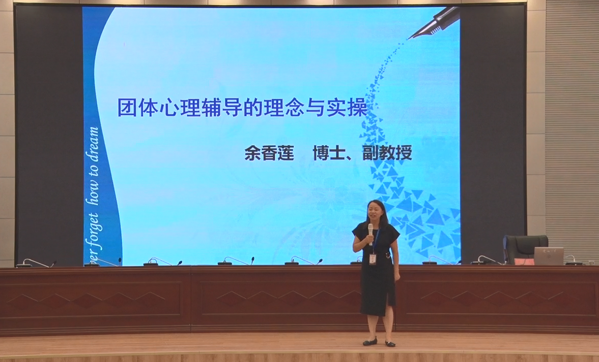 最后,江汉大学余香莲博士以丰富的团辅活动经验为例,针对教师需求及时调整上课内容,以团辅活动的方案设计为切入点,带领中小学教师了解团辅的要素、阶段和技术。她表示“团体心理辅导活动作为个体心理咨询服务的补充,能够促使个体在团体中积极探索自我,不仅能够帮助中小学教师探索自我、完善认知,也为中小学教师开展心理健康教育提供了新的形式。”