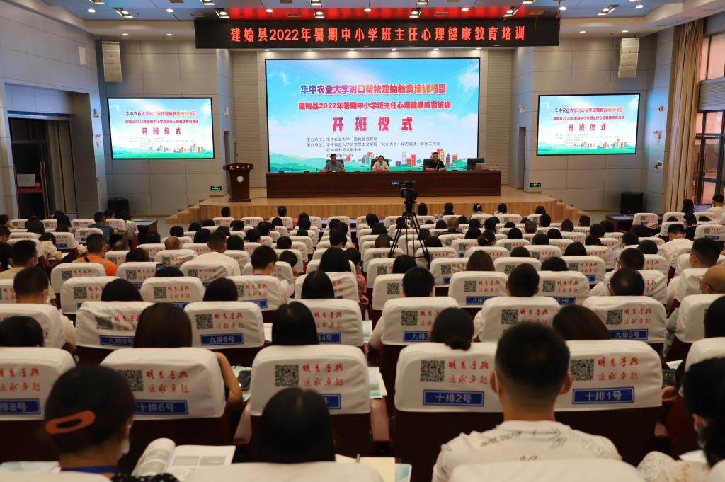 仲夏时节,万物丰茂,为有效提升乡村中小学校心理健康工作水平,促进乡村中小学生的心理健康,7月23—24日,best365官网登录入口与恩施州建始县教育局在建始县第一中学联合举办建始县中小学教师心理健康教育专题培训。来自全县88余所中小学校的200余名乡村教师共同参加研修学习,本次培训活动开班仪式由建始县教育局副局长曾传艳主持。
