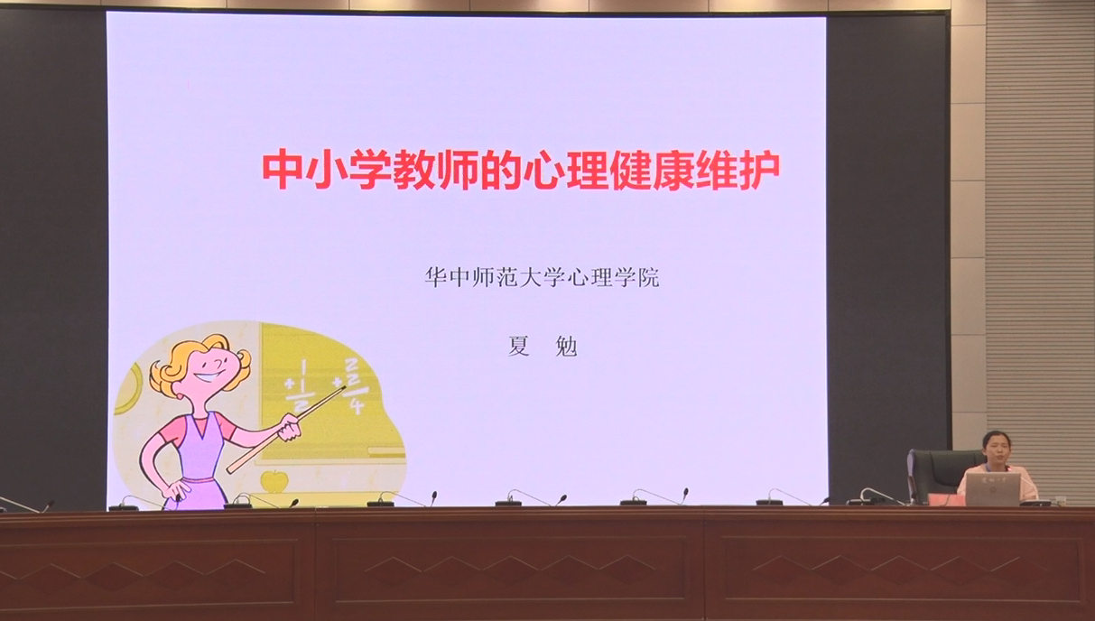 华中师范大学夏勉副教授以《中小学教师的心理健康维护》为题进行报告。她谈到,要想孩子心理健康,首先要维护好教师的心理健康。她从学生心理健康的视角和教师职业本身的视角出发,认为教师的情绪、人格会对儿童的心理健康产生影响。因此,在教育学生的过程中,要避免给学生带来“师源性”心理伤害。